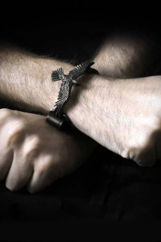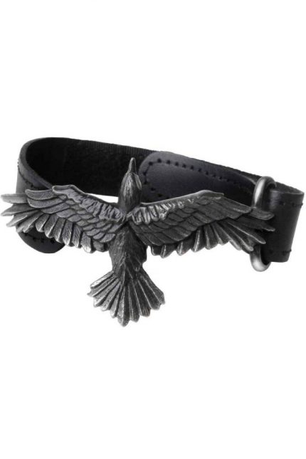 Ремінець виготовлений із натуральної шкіри та прикрашений величним Вороном із англійського олова