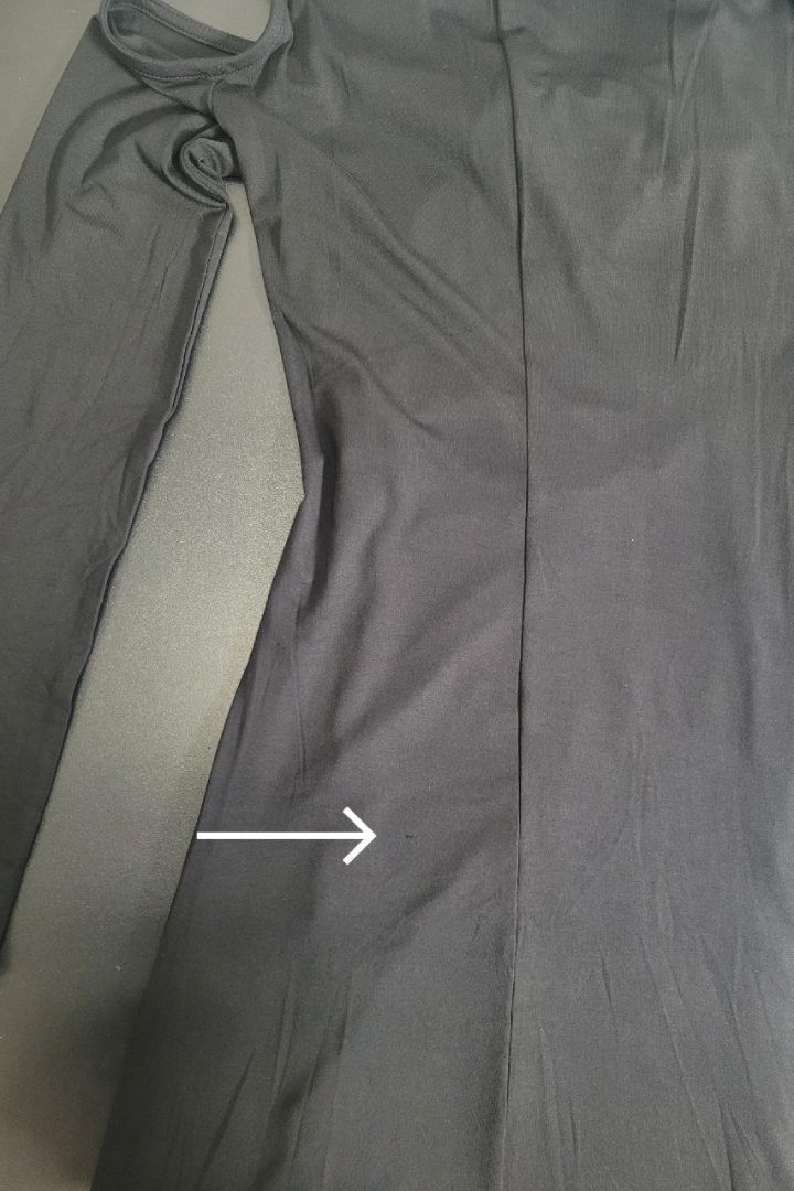 Знижку -50% вказано через виявлену затяжку з дрібною дірочкою ззаду в районі стегон. Фото №2-3